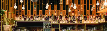 Grand bar lumineux et stylé, à la fois pratique et accueillant