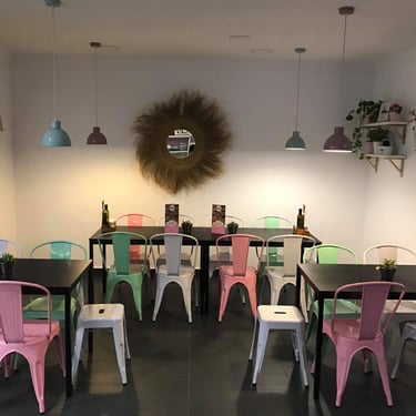 - Salle supplémentaire décorée de couleurs vives et équipée de tables
