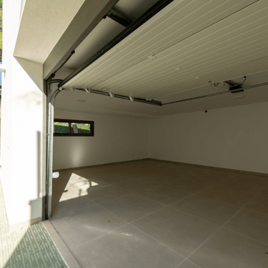 Menuiserie extérieure en aluminium noir, avec volets roulants motorisés (sauf dans le salon). Double vitrage avec filtre solaire. Porte de garage métallique, automatisée avec télécommande. Accès piétonnier avec interphone vidéo. Clôture en métal avec lamelles noires.